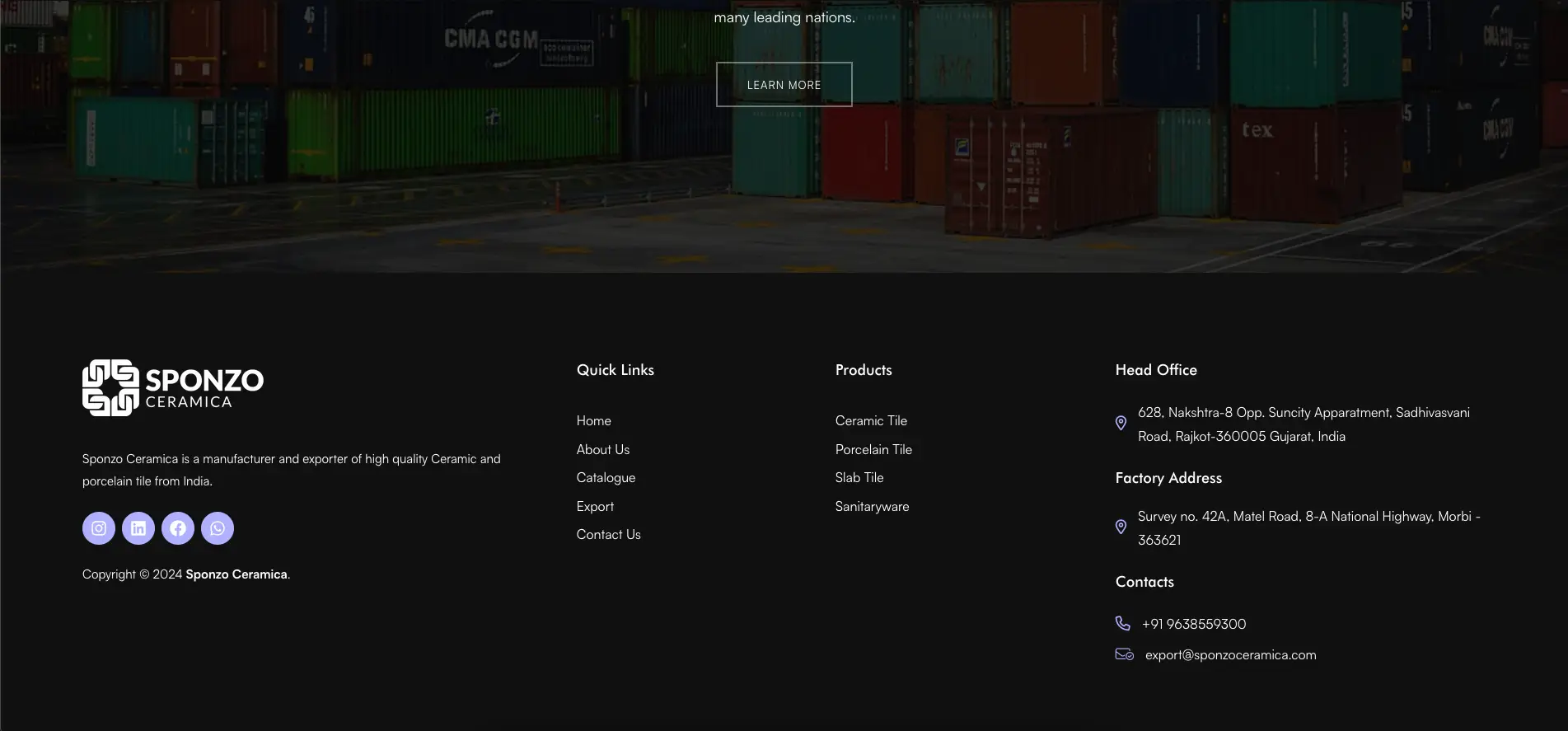 Sponzo Ceramica, a leader in premium ceramic solutions, required a sophisticated and high-performing website to showcase its exquisite product range. We designed a sleek, user-friendly platform that reflects the brand’s commitment to quality and innovation. With a seamless UI, intuitive navigation, and stunning product displays, the website enhances user engagement and boosts brand credibility.